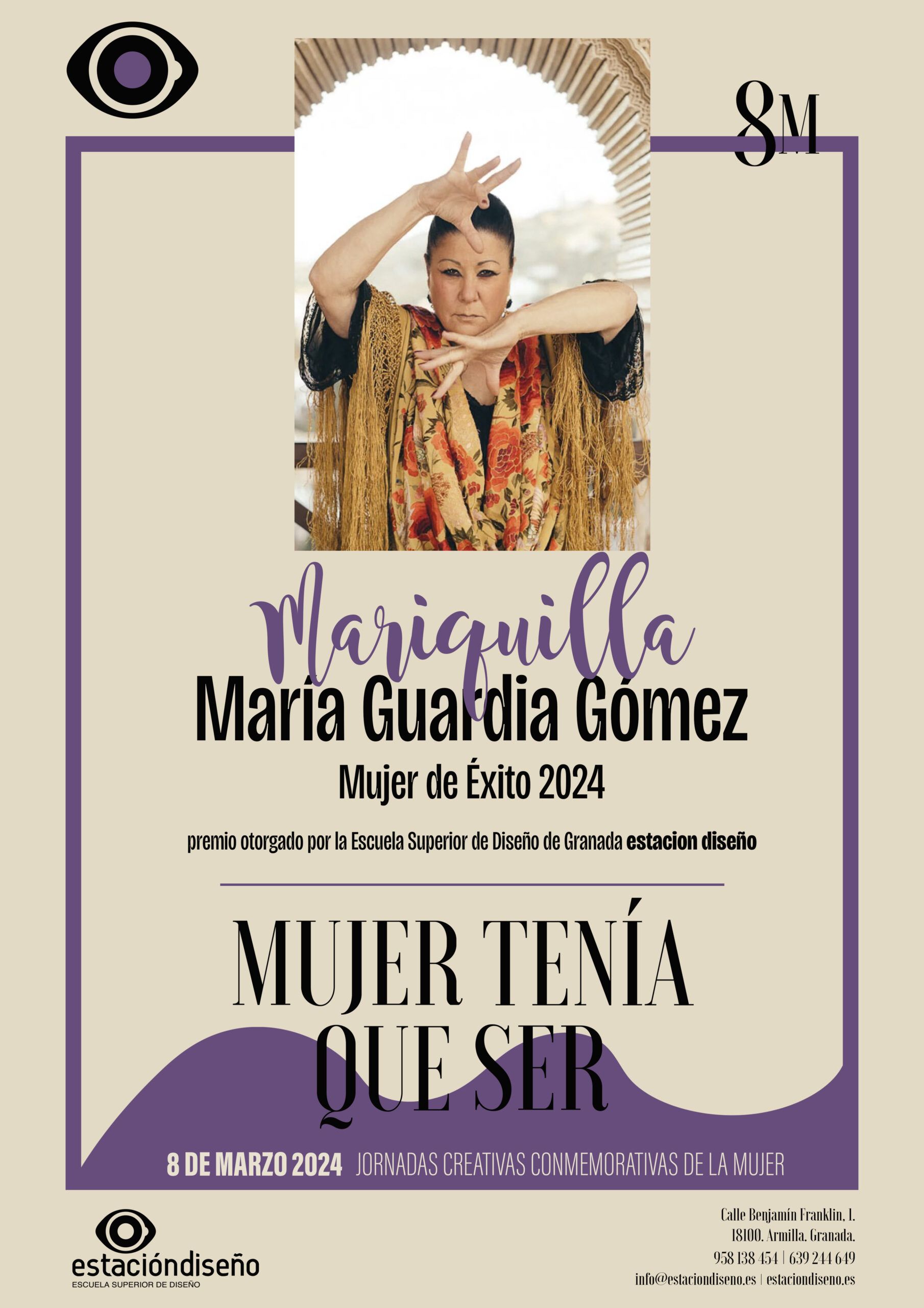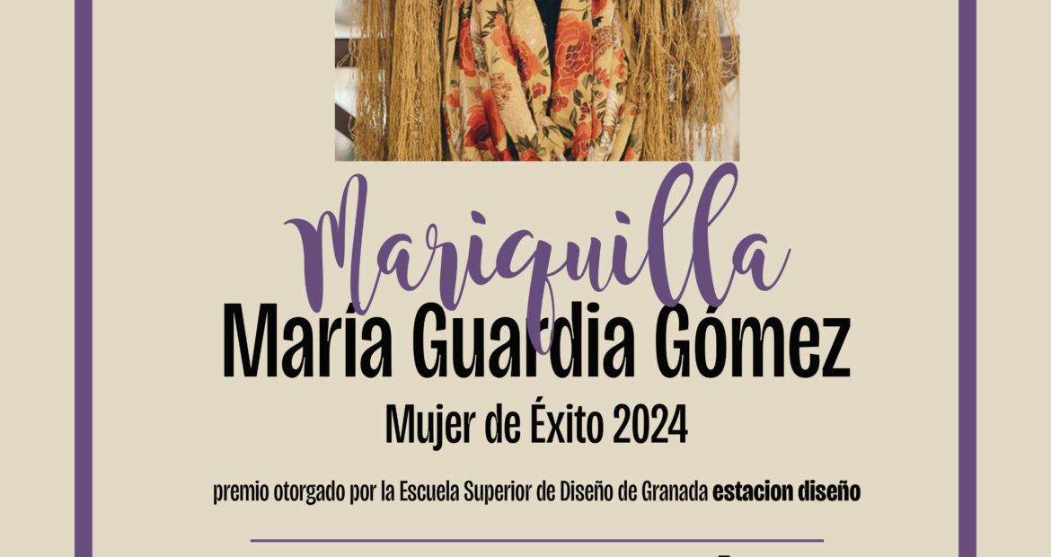 Armilla a 12 de marzo de 2024 – La Escuela Superior de Diseño ESTACION DISEÑO se complace en anunciar que María Guardia Gómez, conocida como «Mariquilla», ha sido galardonada con el prestigioso Premio Mujer de Éxito 2024 en reconocimiento a su destacada trayectoria en el mundo del espectáculo flamenco y sus numerosos éxitos internacionales.